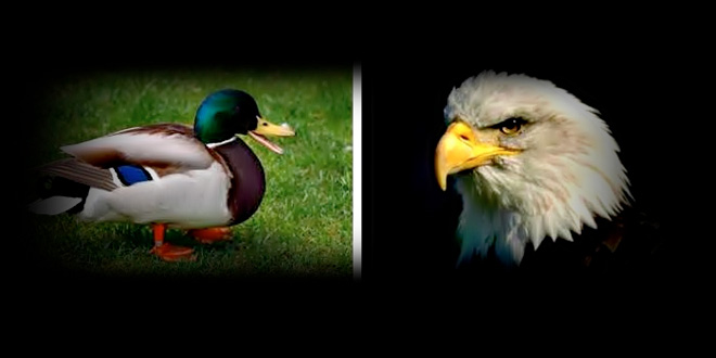 LA FÁBULA DEL ÁGUILA Y EL PATO. Por: Ramiro Guerra M. (RGM) Un águila y un pato estaban enfrascados en…