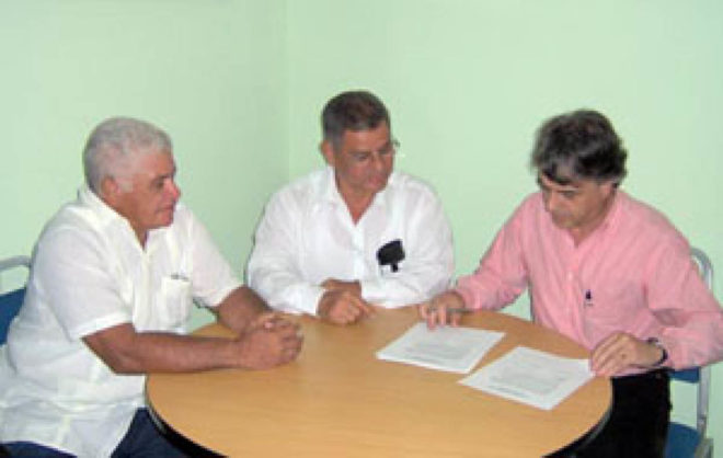 Por Ramiro Guerra y José Dídimo Escobar Samaniego Pablo Arocemena, Guillermo Puga y Gerardo Iglesias durante la firma del convenio…