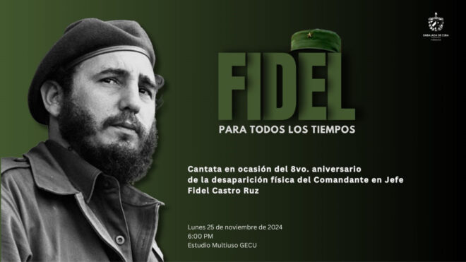 El lunes 25 de noviembre de 2024, se celebrará una cantata a 6 de la tarde en el local de GECU contiguo a la Universidad de Panamá, para celebrar la vida del Comandante Fidel y su legado a la Humanidad.