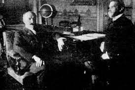 Phillipe Buneau Varilla y el Secretario de Estado Mr. John Milton Hay instantes después de consumar la firma del Tratado del Canal de 18 de noviembre de 1903, tratado que ningún panameño firmó.
