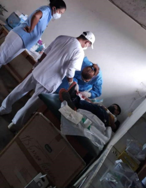 atendiendo a los pacientes en condiciones precarias, sin mayores insumos.