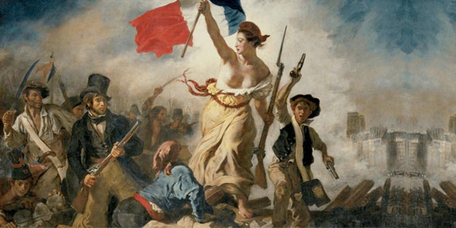 La pintura más representativa de la lucha por la libertad en el mundo occidental es “La Libertad guiando al pueblo” de Henry Delacroix. No fue una obra inspirada en los acontecimientos parisinos de 1789, sino en los levantamientos de 1830 contra Carlos X que intentó restablecer el absolutismo en Francia aboliendo el Parlamento y asumiendo plenos poderes. La obra —cuya arquitectura piramidal poco usual para espacios abiertos, el reemplazo de la perspectiva por la iluminación de fondo, la composición en una V invertida que logra el equilibrio con la una distribución bilateral de los cuerpos y la presencia de una bella mujer que enarbola la bandera en el centro del cuadro como núcleo visual sumadas a su riqueza cromática y del detalle que desarrolló la pintura francesa en ese tránsito entre el neoclásico y el romanticismo, la convierten en una obra de excelencia.Aunque “La Libertad guiando al pueblo” es un orgullo del Louvre y de los franceses, sus antecedentes mas inmediatos están en una obra menos conocida, pero de igual calidad, surgida del talento de Theodor Géricault en 1819 con motivo del naufragio de la fragata La Medusa. “El naufragio de La Medusa” que representa un grupo de náufragos a la deriva en una balsa en medio del océano, con una difusa iluminación de fondo, el mástil tensado por cables atados a los extremos que establecen los ejes de la composición, el equilibrio logrado con cuerpos aparentemente desparramados sobre cubierta y la figura de un náufrago asido al eje central del mástil como punto de referencia visual y, detrás la luminosidad de un cielo que anuncia el fin de la tormenta, proporciona dramatismo y proyecta la imagen hacia el espectador.