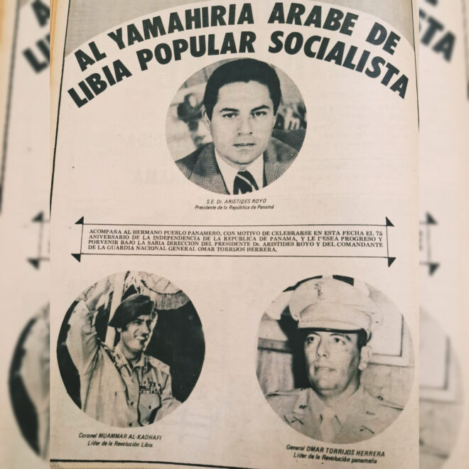 Omar Torrijos visitó Libia y estableció a través de Gadafi  y Fidel Castro un gran apoyo de toda África y los países árabes a la causa panameña de la recuperación de la Soberanía nacional.