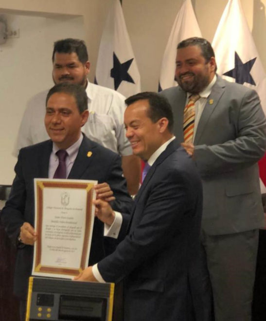 Un poco más tarde, el Colegio Nacional de abogados le entregó la medalla Justo Arosemena al Abogado Silvio Guerra Morales, por las frutíferas aportaciones de este distinguido jurisconsulto, al derecho patrio e internacional y su aporte a la lucha nacional por la soberanía nacional y desarrollo de nuestra democracia. Los dos distinguidos profesionales son colaboradores con este medio informativo y de análisis nacional, por lo que nos unimos a las congratulaciones por tan distinguida y merecida distinción.