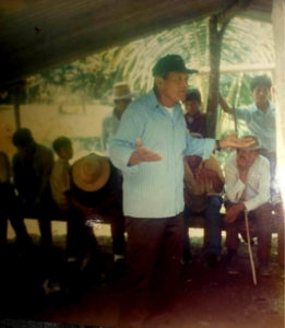 Mario Montezuma líder de la Comarca Ngobe Bugle dialogando con su pueblo en Alto Caballero.