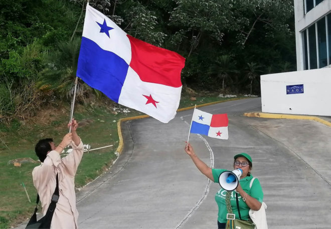 Nos reunimos en la plazoleta que se utiliza para pescar, sitio que logró vistosidad, ante muchas banderas panameñas y pancartas