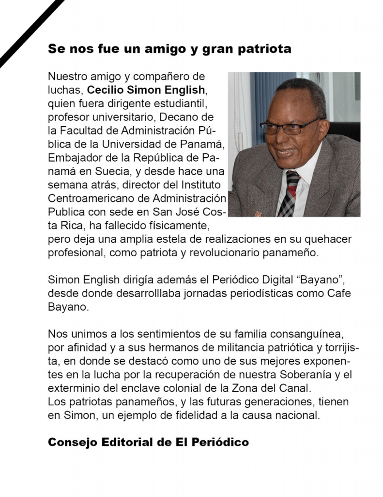 Se nos fue un gran amigo y Patriota, Cecilio Simon English