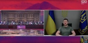 El presidente ucraniano, Volodimir Zelenski, se dirige por videoconferencia a los participantes en la cumbre del G20.